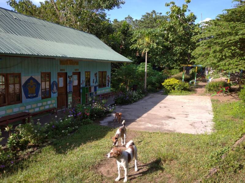 Wat nog aandacht behoeft is het schoolplein. In de droge tijd is het stoffig en in de regentijd blubberig,