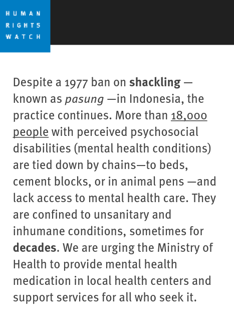 Deels uit angst & taboe, maar zeker ook doordat er op Flores ( nog ) geen psychiaters & medicatie zijn. In Kupang, de hoofdstad van de Oostelijke kleine Sunda eilanden, zijn nu slechts 3 psychiaters.