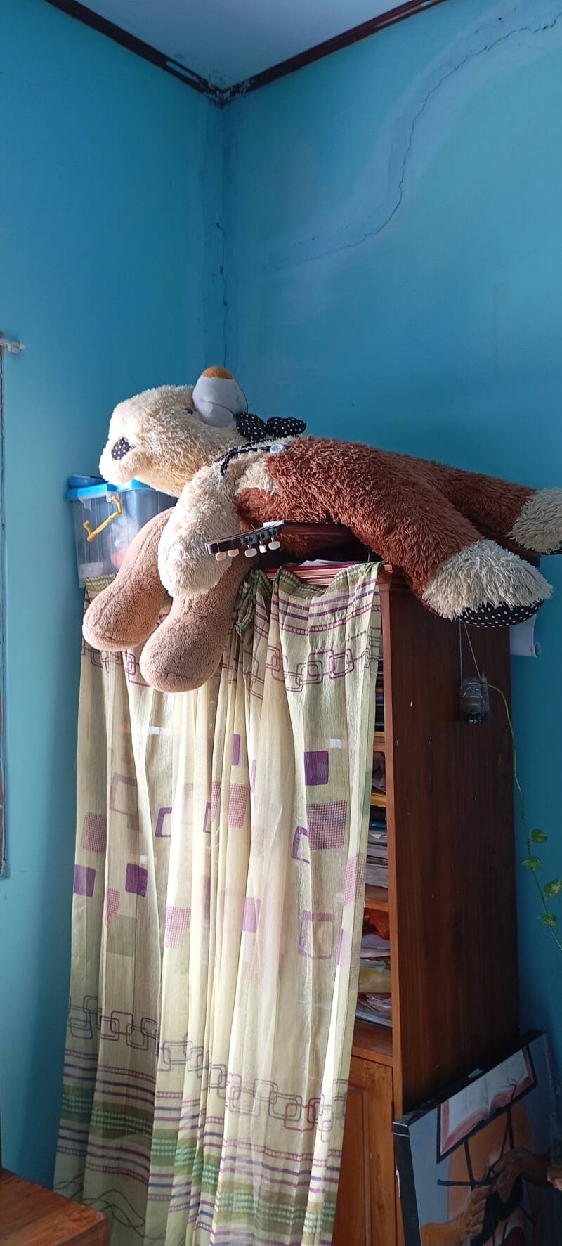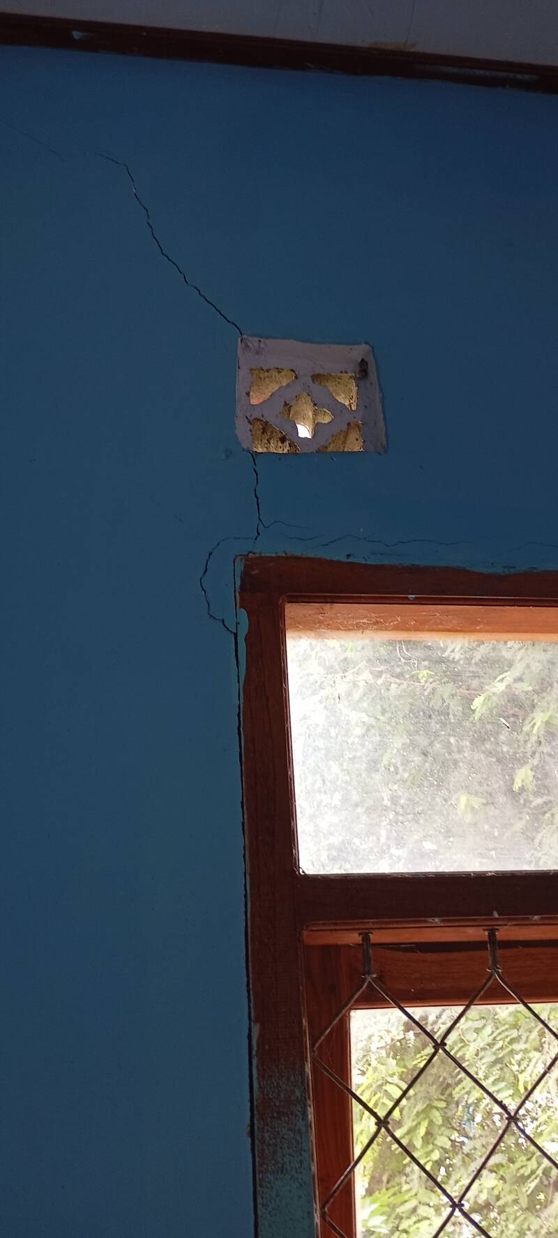 Er zitten scheuren in de muren vanwege aardbeving(en) in het verleden.