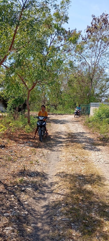 De toegangsweg op de onderstaande foto's veranderd in de regentijd in een onbegaanbare weg. Het plan is om de 100 meter lange weg van een fundering te voorzien en te verhogen.